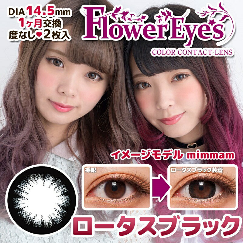 カラコン フラワーアイズ カラーコンタクトレンズ 1箱2枚入 度なし 使い捨て ロータスブラック マンスリー デイリー 14.5mm メール便 送料無料 クリスマスプレゼント 秋冬