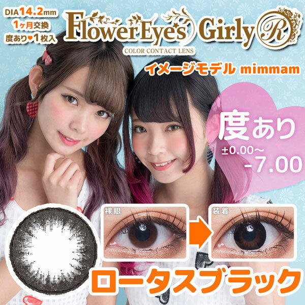 カラコン フラワーアイズGirly カラーコンタクトレンズ 1箱1枚入 度なし 度あり 使い捨て ロータスブラック マンスリー ナチュラル 14.2mm メール便 送料無料 クリスマスプレゼント 秋冬