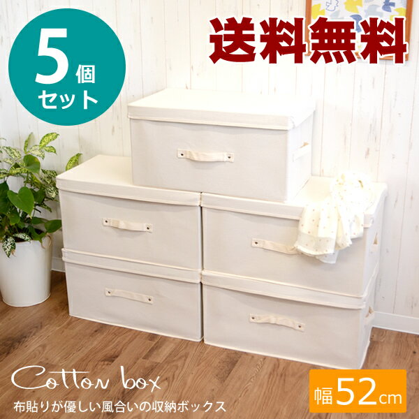 【送料無料】【送料無料】【規格変更しました】コットン収納ボックス 5個セット 52 綿収納ボックス ナチュラル BOX 約52×30×26.5cm 収納ケース 収納ボックス フタ付き 押入れ収納 収納ボックス 衣類収納 衣替え 整理整頓 収納【送料無料・送料込】