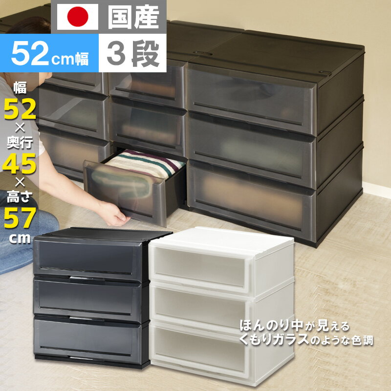 【送料無料】収納ケース 3段 プラスチック製 引き出し 日本製【クリアチェストC520-3】奥行45cm 幅52cm 服 押入れ クローゼット 衣替え おしゃれ キャビネット リビング 衣装ケース 透明