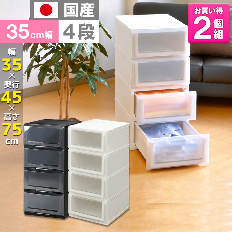 【送料無料】収納ケース 4段 プラスチック製 引き出し 日本製《お徳用2個セット》【クリアチェストC350-4】奥行45cm 幅35cm 服 押入れ クローゼット 衣替え おしゃれ キャビネット リビング 衣装ケース 透明